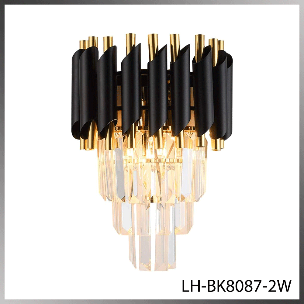 Applique murale en cristal – 2× douille E14 (petit culot) – finition noir